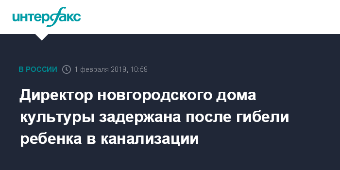 Москва. 1 февраля. INTERFAX.RU - В поселке Волот Новгородской области задержана директор дома культуры, обвиняемая в гибели восьмилетнего мальчика в канализационной яме.