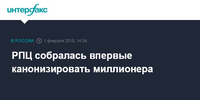 Москва. 1 февраля. INTERFAX.RU - Ближайший Архиерейский Собор РПЦ рассмотрит вопрос о канонизации жившего в XIX веке иркутского купца, который жертвовал огромные суммы на храмы, монастыри и помощь малоимущим и даже прослыл из-за этого сумасшедшим, сообщает газета "Крестовский мост".