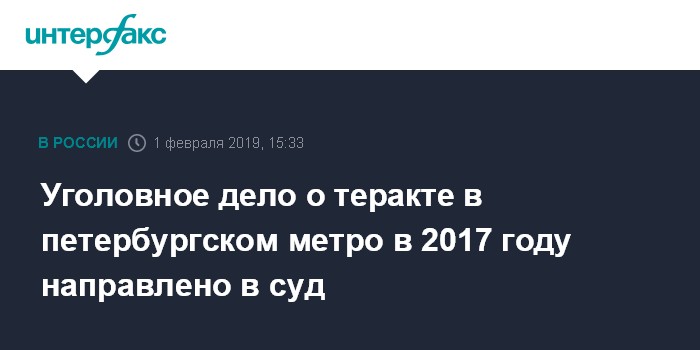 Москва. 1 февраля. INTERFAX.RU - Уголовное дело о теракте в петербургском метрополитене направлено в Московский окружной военный суд, сообщил "Интерфаксу" в пятницу официальный представитель Генпрокуратуры РФ Александр Куренной.