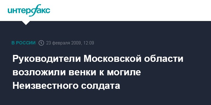 Москва. 23 февраля. INTERFAX.RU - В День защитника Отечества руководители Московской области возложили цветы и венки к могиле Неизвестного солдата у Кремлевской стены и памятнику Г.К.Жукову на Манежной площади.