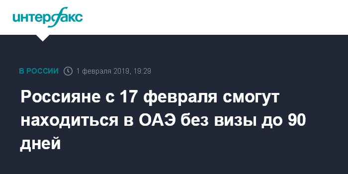 Россияне с 17 февраля смогут находиться в ОАЭ без визы до 90 дней