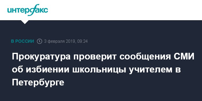 Москва. 3 февраля. INTERFAX.RU - Прокуратура в Санкт-Петербурге проверяет информацию СМИ о том, что школьницу избил преподаватель, сообщили в пресс-службе ведомства в субботу.