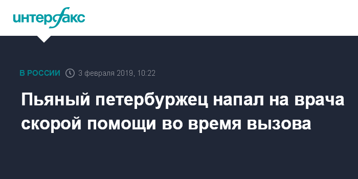 "Ночью 3 февраля 2019 года в квартире одного из домов, расположенного на Гаванской улице в Санкт-Петербурге, местный житель, находящийся в состоянии алкогольного опьянения, ударил кулаком по лицу врача скорой помощи, прибывшего для оказания медицинской помощи его жене", - рассказали в пресс-службе.