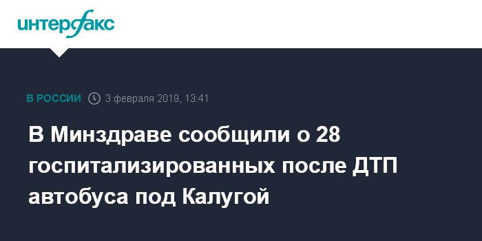 Москва. 3 февраля. INTERFAX.RU - В больницы госпитализированы 28 человек, в том числе 22 ребенка, пострадавших в ДТП под Калугой, сообщает Минздрав России.