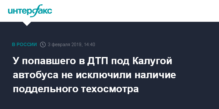 Москва. 3 февраля. INTERFAX.RU - Автобус, перевернувшийся под Калугой, мог проходить техосмотр лишь номинально, сообщил "Интерфаксу" источник, знакомый с ходом расследования.