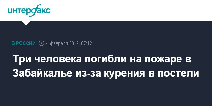 Три человека погибли на пожаре в Забайкалье из-за курения в постели