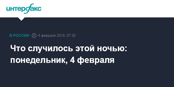Москва. 4 февраля. INTERFAX.RU - Краткая сводка событий, произошедших к утру: