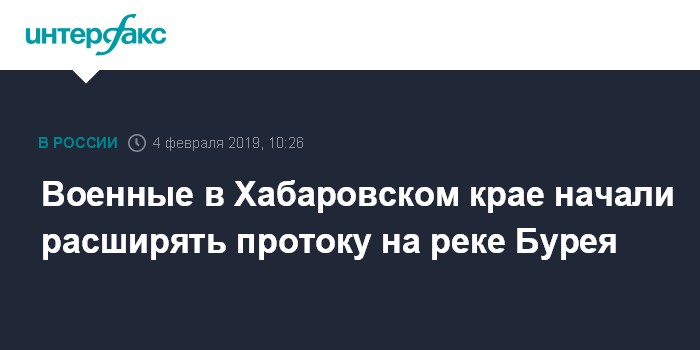 Москва. 4 февраля. INTERFAX.RU - Инженерные войска Министерства обороны приступили ко второму этапу операции по устранению завала, перегородившего в хабаровском крае русло реки Бурея - военным предстоит расширить протоку для восстановления водного режима, сообщается на сайте правительства Хабаровского края в понедельник.