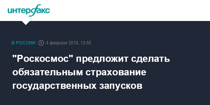 Москва. 4 февраля. INTERFAX.RU - "Роскосмос" планирует внести поправки в законодательство, делающие обязательным страхование запусков ракетно-космической техники, изготовленной за счет и в интересах государства, сообщил глава госкорпорации Дмитрий Рогозин.