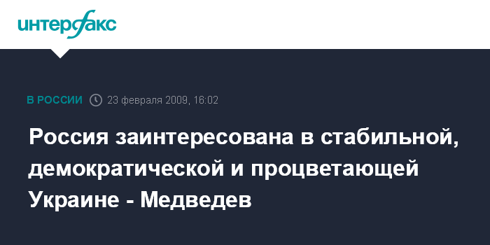 Россия заинтересована в стабильной, демократической и процветающей Украине - Медведев