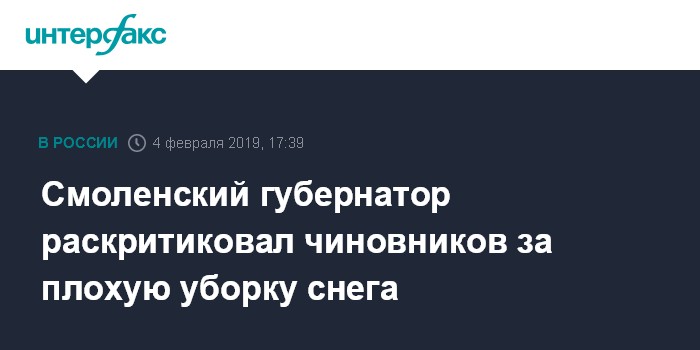 По мнению главы региона, "организация этой работы выстроена крайне неэффективно", несмотря на то, что на протяжении последних лет Смоленску выделялись значительные средства на приобретение снегоуборочной техники. Для исправления ситуации, по мнению губернатора, необходимы "жесткие кадровые решения".
