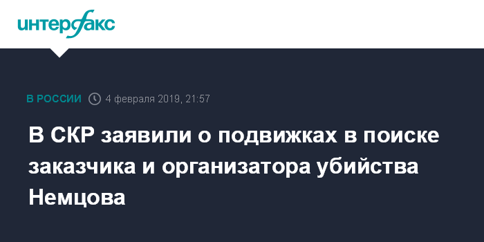 Москва. 4 февраля. INTERFAX.RU - Следствие по делу убийства политика Бориса Немцова продвинулось в плане установления личностей заказчика и организатора этого преступления, сообщил замглавы Следственного комитета РФ (СКР) Игорь Краснов.