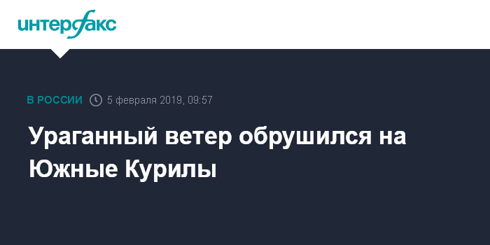 Москва. 5 февраля. INTERFAX.RU - Ураганный ветер бушует с минувшей ночи во вторник на острове Итуруп (Южные Курилы Сахалинской области), отменены занятия в школах, в двух населенных пунктах частично нарушено энергоснабжение, сообщил агентству "Интерфакс" глава Курильского района Вадим Рокотов.