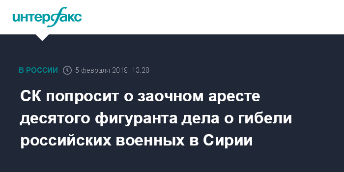 СК попросит о заочном аресте десятого фигуранта дела о гибели российских военных в Сирии