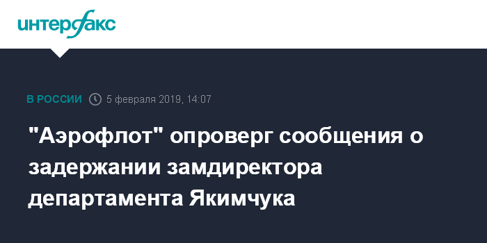 "Аэрофлот" опроверг сообщения о задержании замдиректора департамента Якимчука
