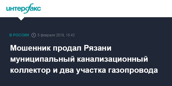 Москва. 5 февраля. INTERFAX.RU -Житель Рязани по подложным документам продал городским властям и коммерческим организациям муниципальный канализационный коллектор и два участка газопровода, сообщила во вторник пресс-служба УМВД России по региону.