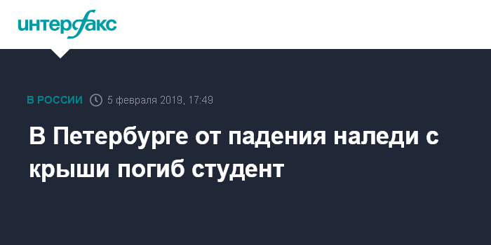 Москва. 5 февраля. INTERFAX.RU - Следственное управление СКР по Санкт-Петербургу возбудило уголовное дело по факту гибели студента в результате падения наледи.