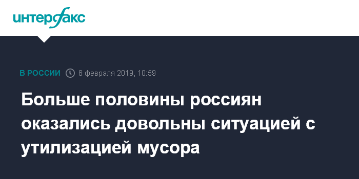 Москва. 6 февраля. INTERFAX.RU - Большинство граждан РФ в целом удовлетворены тем, как вывозится и утилизируется бытовой мусор, свидетельствуют данные опроса ВЦИОМ, поступившие в "Интерфакс".