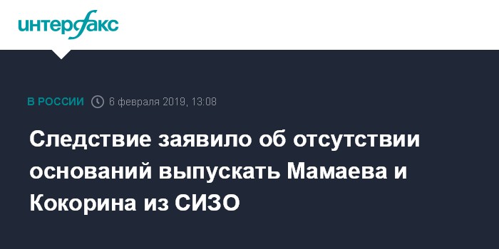 Следствие заявило об отсутствии оснований выпускать Мамаева и Кокорина из СИЗО
