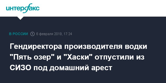 Гендиректора производителя водки "Пять озер" и "Хаски" отпустили из СИЗО под домашний арест