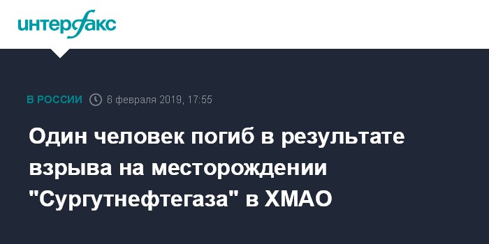 Один человек погиб в результате взрыва на месторождении "Сургутнефтегаза" в ХМАО