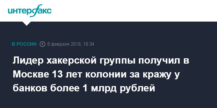 Лидер хакерской группы получил в Москве 13 лет колонии за кражу у банков более 1 млрд рублей