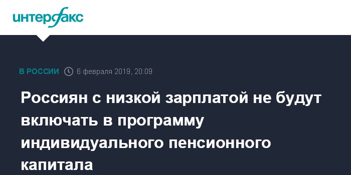 Россиян с низкой зарплатой не будут включать в программу индивидуального пенсионного капитала