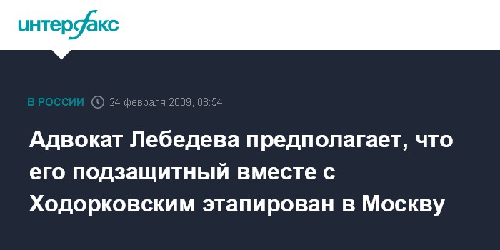 Адвокат Лебедева предполагает, что его подзащитный вместе с Ходорковским этапирован в Москву