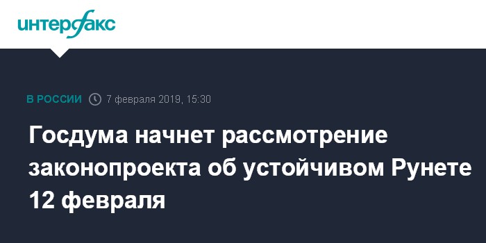 Госдума начнет рассмотрение законопроекта об устойчивом Рунете 12 февраля