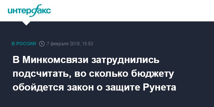В Минкомсвязи затруднились подсчитать, во сколько бюджету обойдется закон о защите Рунета