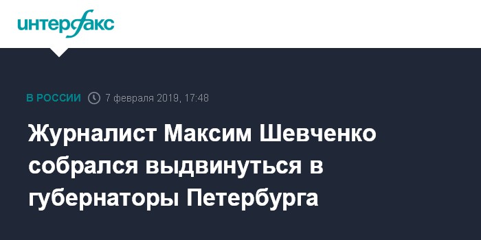 Москва. 7 февраля. INTERFAX.RU - Публицист, депутат Законодательного собрания Владимирской области Максим Шевченко заявил о планах участвовать в выборах губернатора Санкт-Петербурга.