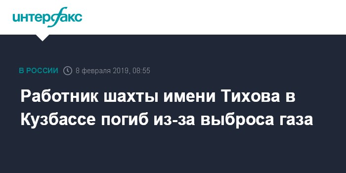 Москва. 8 февраля. INTERFAX.RU - Три человека пострадали, один погиб из-за выброса газа на шахте имени Тихова в пригороде Ленинск-Кузнецкого Кемеровской области, сообщил агентству "Интерфакс" осведомленный источник в пятницу.