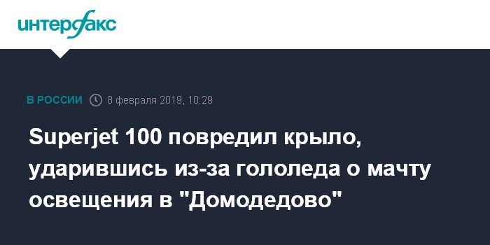 Superjet 100 повредил крыло, ударившись из-за гололеда о мачту освещения в "Домодедово"