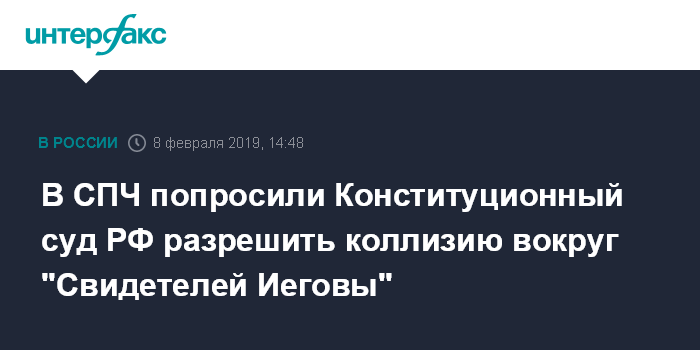 Кремль разберется с проблемой "Свидетелей Иеговы", где здравый смысл столкнулся с законностьюЧитать подробнееПо его словам, также КС мог бы рассмотреть норму про религиозное превосходство, которая становится причиной для признания организаций экстремистскими. "Это тоже коллизия между Конституцией, которая дает возможность свободы совести, и антиэкстремистским законодательством", - сказал член СПЧ.