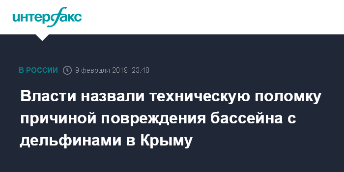 Москва. 9 февраля. INTERFAX.RU - Разгерметизация бассейна в дельфинарии Алушты на юге полуострова произошла в субботу по технической причине, сообщила "Интерфаксу" глава администрации города Галина Огнева.