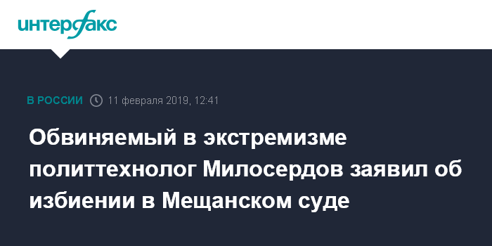Обвиняемый в экстремизме политтехнолог Милосердов заявил об избиении в Мещанском суде