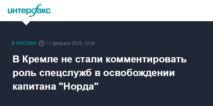 Москва. 11 февраля. INTERFAX.RU - В Кремле не комментируют роль российских спецслужб в освобождении капитана сейнера "Норд" Владимира Горбенко и подчеркивают, что главное - это то, что сейчас он на родине.