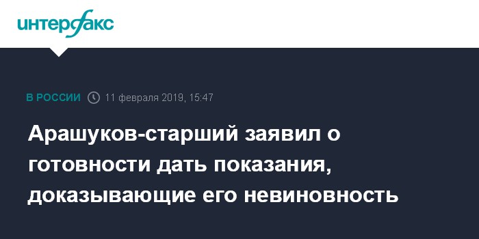 "Наш доверитель говорит нам: "Пусть ко мне придет следователь - я отвечу ему на любые вопросы, я готов дать пояснения по всему". Он готов оправдаться", - сказал Постанюк на заседании Мосгорсуда в понедельник, где рассматривается жалоба адвокатов на арест Арашукова-старшего.