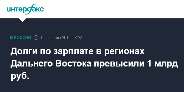 Долги по зарплате в регионах Дальнего Востока превысили 1 млрд руб.