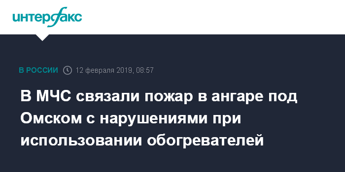 Москва. 12 февраля. INTERFAX.RU - Нарушение правил пожарной безопасности могло стать причиной возгорания в ангаре с автотехникой в поселке под Омском, сообщает Главное управление МЧС по региону.