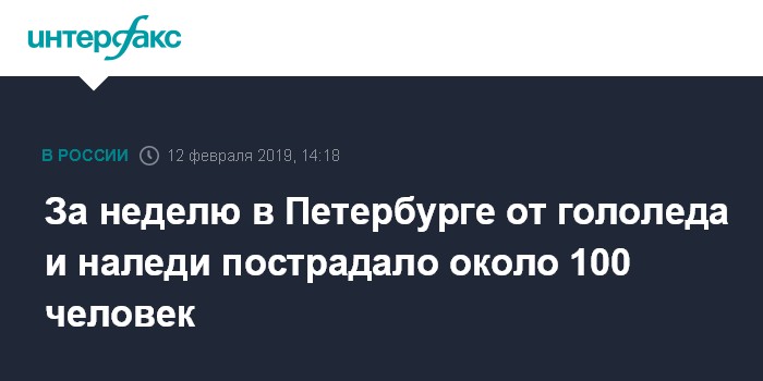 С начала зимы в Петербурге от гололеда и падения наледи пострадали десятки человек. 31 января льдина упала на голову 25-летней жительнице города, в тяжелом состоянии она была госпитализирована, было возбуждено уголовное дело. В тот же день от падения наледи пострадала гражданка Вьетнама. Ранее, поскользнувшись на льду, получила травму 79-летняя уроженца Ленинграда, позже она скончалась в больнице. В минувший вторник в Петроградском районе города от упавшей с крыши глыбы льда погиб студент. 9 февраля у дома 17 по Загородному проспекту в результате падения наледи была травмирована девятилетняя девочка.