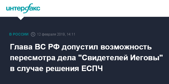 "Насколько я знаю, они (иеговисты) обратились в ЕСПЧ, посмотрим, какое будет принято решение. Если (ЕСПЧ) удовлетворит жалобу, то они могут обратиться (за пересмотром - ИФ), мы рассмотрим", - сказал во вторник "Интерфаксу" председатель Верховного суда России Вячеслав Лебедев.