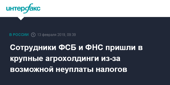 Сотрудники ФСБ и ФНС пришли в крупные агрохолдинги из-за возможной неуплаты налогов