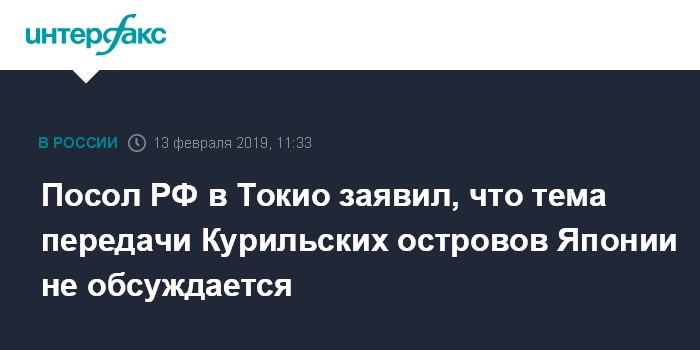 Посол РФ в Токио заявил, что тема передачи Курильских островов Японии не обсуждается