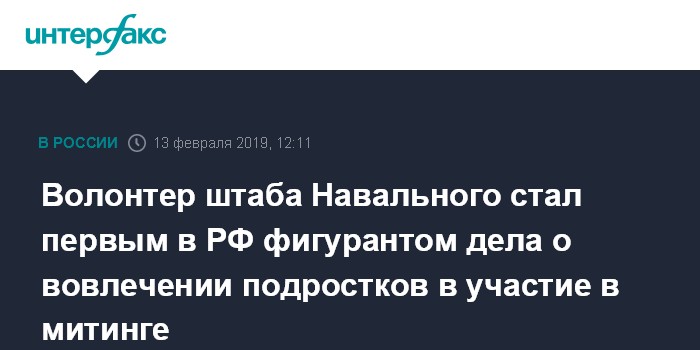 Волонтер штаба Навального стал первым в РФ фигурантом дела о вовлечении подростков в участие в митинге