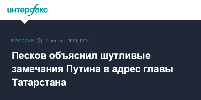 Москва. 13 февраля. INTERFAX.RU - Шутки, которые звучали накануне в адрес главы Татарстана Рустама Минниханова со стороны президента РФ Владимира Путина, объясняются исключительно добрым отношением главы государства к руководителю этого региона, претензий к нему нет, сказал пресс-секретарь главы государства Дмитрий Песков.