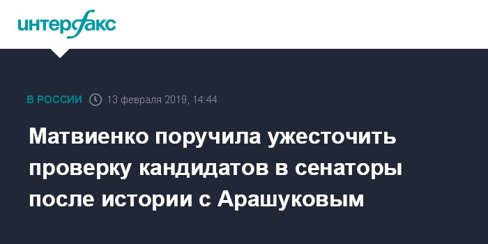 Москва. 13 февраля. INTERFAX.RU - Председатель Совета Федерации Валентина Матвиенко в связи с историей с Рауфом Арашуковым поручила профильному комитету верхней палаты подготовить предложения по совершенствованию процедуры проверки кандидатов в сенаторы.