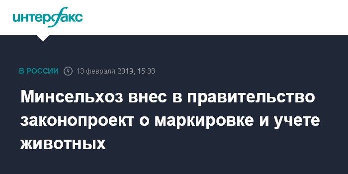 Минсельхоз внес в правительство законопроект о маркировке и учете животных