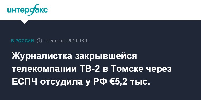 Журналистка закрывшейся телекомпании ТВ-2 в Томске через ЕСПЧ отсудила у РФ €5,2 тыс.