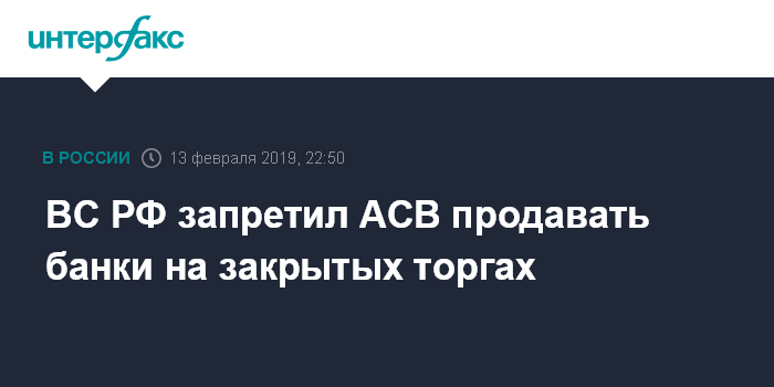 ВС РФ запретил АСВ продавать банки на закрытых торгах